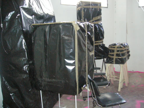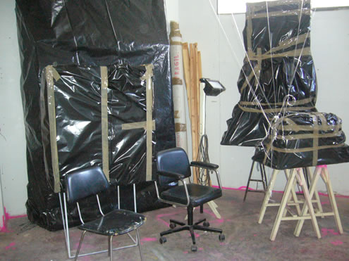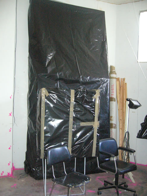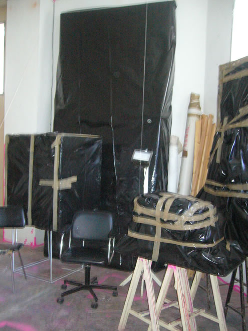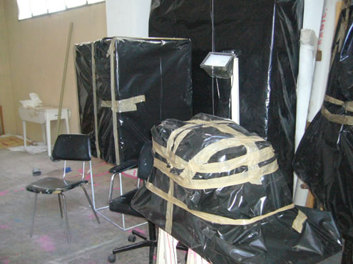 Serie de 12 fotografías sobre el embalaje de las obras que quedaron en el estudio de Massamagrell. Estas fotografías fueron realizadas el 31/01/2007, por el propio dueño del espacio.