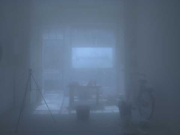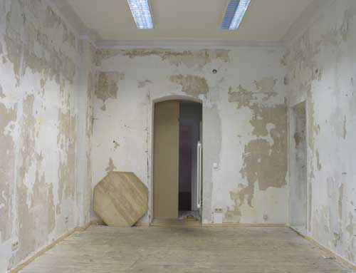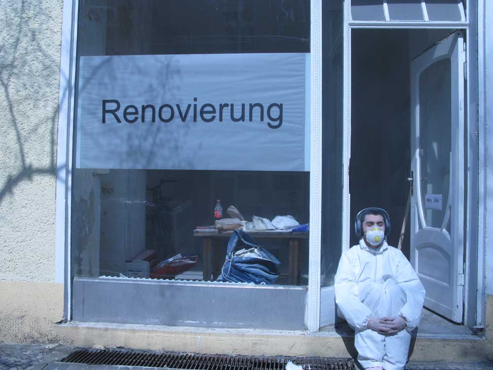 Eine umkehrte Verbindung mit Gedächtnis wird in „Renovierung“ aufgebaut: der öffentliche Raum der Galerie bringt zum Vorschein, externalisiert die Erinnerung einer Geschichte – die einmonatige Lebensgeschichte des Künstlers, die sich in diesem Raum abspielt (wie ein Palimpsest), dabei aber – umkippt und annulliert – verliert sie ihre eigene.